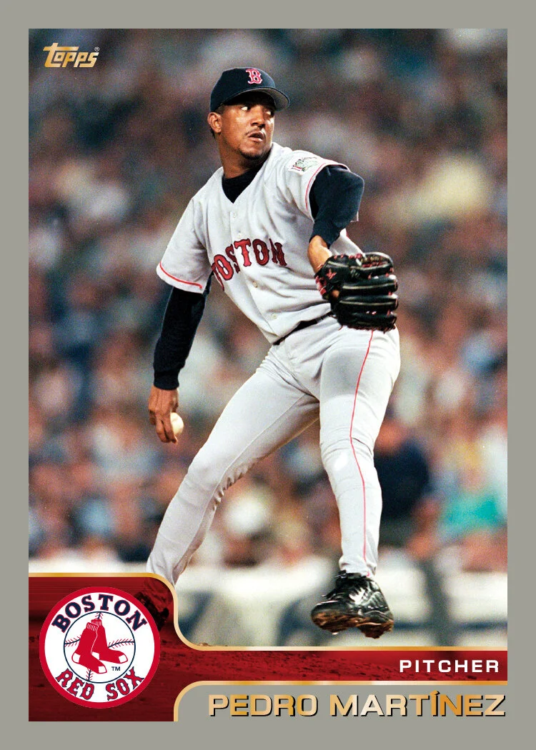 Thanks to the internet, I’ve been able to fill in the gaps here and there in the subsequent years. Whether stuff popping up on my Twitter timeline, random sale/trade threads on forums or simply just on the Cardboard Connection chronicle, I’ve seen enough of the decade to know that I missed out on a LOT of ugly designs. Being one who rarely misses out on an opportunity to pick apart card design, I felt compelled to put my mouse where my mouth is and do some “remixes”. I’ve done this in the past on my old blog and randomly on Twitter when the mood struck me. Here, I’m doing an organized stroll through the decade of Topps flagship designs I missed out on their first time around.